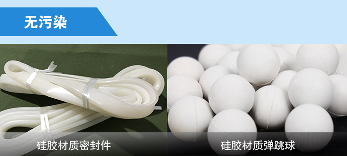藥用行業有嚴格的衛生標準,大漢藥用篩分機除了材質方面選擇衛生安全的不銹鋼材質,在配件方面,更是做到符合醫藥行業的衛生要求,設備的彈跳球及密封件選擇硅膠材質,無污染。