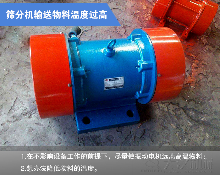 預防措施:1.在不影響設備工作的前提下,盡量使振動電機遠離高溫物料;2.想辦法降低物料的溫度。