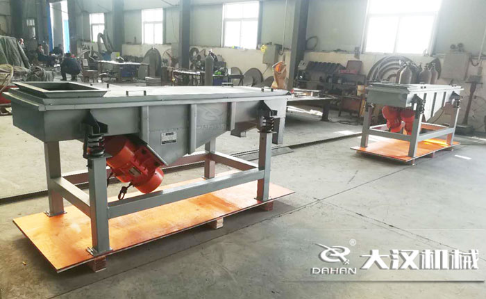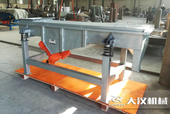 DZSF系列直線震動篩為雙振動電機驅動。當兩臺振動電機做同步、反向旋轉時,其偏心塊所產生的激振力在平行于電機軸線的方向相互抵消,在垂直于電機軸的方向疊為一合力,因此篩機的運動軌跡為一直線。兩電機軸相對篩面在垂直方向有一傾角,在激振力和物料自重力的合力作用下,物料在篩面上被拋起跳躍或向前作直線運動,從而達到對物料進行篩選和分級的目的。適用于粒度在0.074—5mm,含水量小于7%,無粘性的各種干式粉狀或顆粒狀物料的篩分。給料粒度不大于10mm。