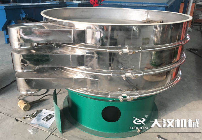 DH-800-2S型振動(dòng)篩為800mm直徑兩層三出口不銹鋼旋振篩,子母網(wǎng)分離式網(wǎng)架,底座為碳鋼材質(zhì)。