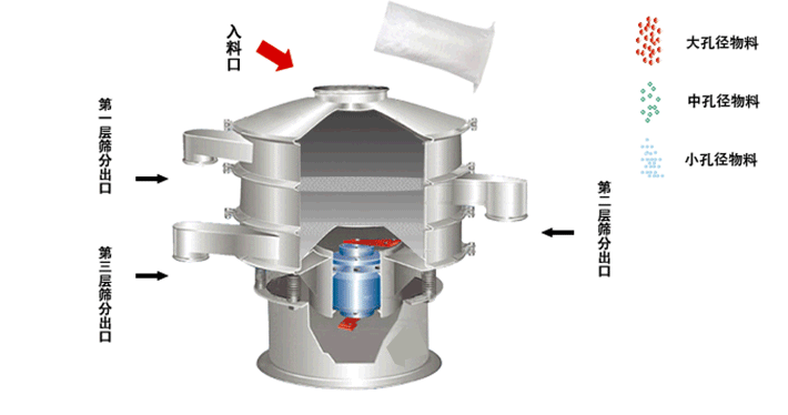 香料粉篩分機中的振動篩和直排篩是通過電機產生的振動進行篩分,電機產生振動,物料在篩網中不斷進行擴散、跳躍,從而大顆粒被留在最上層篩網中,小顆粒不斷穿過篩網,然后從最下層篩網中排出。氣流篩是通過負壓氣流作為載體,細的香料粉隨氣流穿過網孔,粗的香料粉被阻隔排出。